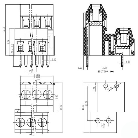 材質(zhì)螺絲:M2鋼 鍍鋅觸頭:黃銅焊針:黃銅 鍍錫塑件: PA66, UL94V-0