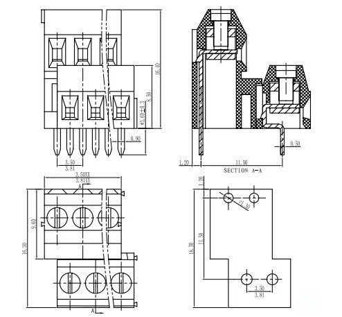 材質(zhì)螺絲:M2鋼 鍍鋅觸頭:黃銅焊針:黃銅 鍍錫塑件: PA66, UL94V-0
