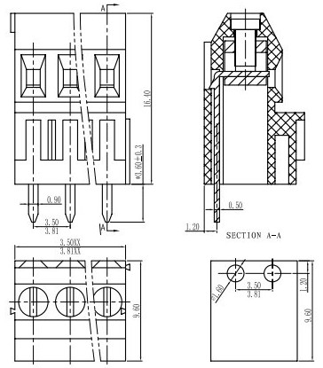 材質(zhì)螺絲:M2鋼 鍍鋅觸頭:黃銅焊針:黃銅 鍍錫塑件: PA66, UL94V-0
