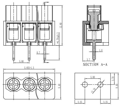 電氣性能額定電壓: 250V額定電流: 12A接觸電阻: 20mΩ絕緣電阻:5000MΩ/1000V耐電壓:AC1500V/1Min使用線徑:18-12AWG 2.5mm2