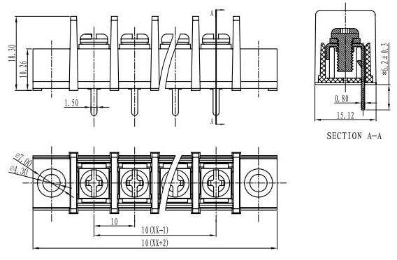 材質(zhì)塑件:PA66, UL94V-0端子:黃銅 0.8t, 鍍錫螺絲:M4 鋼 鍍鎳