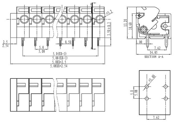 電氣性能額定電壓: 250V額定電流: 10A接觸電阻: 20mΩ絕緣電阻:5000MΩ/1000V耐電壓:AC 1500V/1Min使用線徑:22-14AWG 1.5mm2