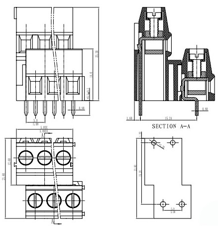 材質(zhì)螺絲:M2.5 鋼 鍍鋅觸頭:黃銅焊針:黃銅 鍍錫塑件: PA66, UL94V-0