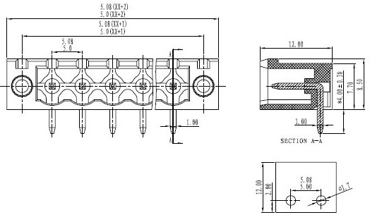 材質(zhì)及電鍍 螺母:M2.5,黃銅 焊針:黃銅,鍍錫 塑件:PA66,UL94V-0 電氣性能 參考標(biāo)準(zhǔn): UL IEC 額定電壓:250V 320V 額定電流:10A 15A 接觸電阻:20mΩ 絕緣電阻:5000MΩ/DC1000V 耐電壓:AC 2000V/1 Min 機(jī)械性能 溫度范圍:-40℃~+105℃ 瞬時(shí)溫度:+250℃ 5秒