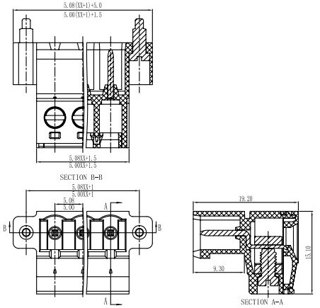 材質及電鍍 螺絲:M3.0,鋼,鍍鋅 方塊:黃銅, 鍍鎳焊針:黃銅,鍍錫 塑件:PA66,UL94V-0 電氣性能 參考標準: UL IEC 額定電壓:300V 320V 額定電流:15A 20A 接觸電阻:20mΩ 絕緣電阻:5000MΩ/DC1000V 耐電壓:AC 2000V/1 Min 使用線徑:22-14 AWG 2.5mm² 機械性能 溫度范圍:-40℃~+105℃ 瞬時溫度:+250℃ 5秒 扭矩:0.5Nm(4.5Lb.in) 剝線長度:7mm